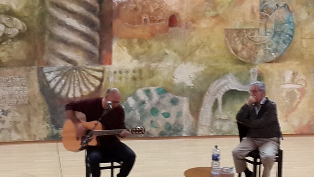 ובסיומה של ההרצאה של עמוס עוז, סיפר לנו אבי בללי על תהליך הכתיבה של השיר "אופניים וספר": לילה אחד יצאתי אחרי הופעה, קצת ספוג באלכוהול, ופגשתי באדם שישן בגן הציבורי. הוא אמר, פעם הייתי רופא עיניים מרומניה, פעם הייתי כמוך… ואותי תפסה הנזילות הזאת של החיים. האיש בא לארץ מרומניה, ופה מגלה שהוא צריך להאבק מחדש.