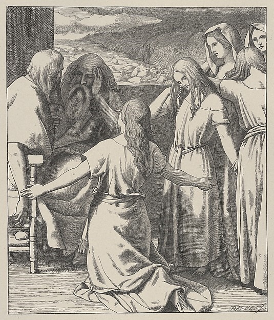וַתַּעֲמֹדְנָה לִפְנֵי מֹשֶׁה, וְלִפְנֵי אֶלְעָזָר הַכֹּהֵן, וְלִפְנֵי הַנְּשִׂיאִם, וְכָל-הָעֵדָה–פֶּתַח אֹהֶל-מוֹעֵד, לֵאמֹר: אָבִינוּ, מֵת בַּמִּדְבָּר, וְהוּא לֹא-הָיָה בְּתוֹךְ הָעֵדָה הַנּוֹעָדִים עַל-יְהוָה, בַּעֲדַת-קֹרַח: כִּי-בְחֶטְאוֹ מֵת, וּבָנִים לֹא-הָיוּ לוֹ. לָמָּה יִגָּרַע שֵׁם-אָבִינוּ מִתּוֹךְ מִשְׁפַּחְתּוֹ, כִּי אֵין לוֹ בֵּן; תְּנָה-לָּנוּ אֲחֻזָּה, בְּתוֹךְ אֲחֵי אָבִינוּ.