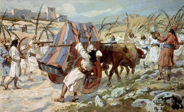 וַיָּקָם וַיֵּלֶךְ דָּוִד וְכָל-הָעָם אֲשֶׁר אִתּוֹ מִבַּעֲלֵי יְהוּדָה לְהַעֲלוֹת מִשָּׁם אֵת אֲרוֹן הָאֱלֹהִים אֲשֶׁר-נִקְרָא שֵׁם שֵׁם ה' צְבָאוֹת יֹשֵׁב הַכְּרֻבִים עָלָיו. וַיַּרְכִּבוּ אֶת-אֲרוֹן הָאֱלֹהִים אֶל-עֲגָלָה חֲדָשָׁה וַיִּשָּׂאֻהוּ מִבֵּית אֲבִינָדָב אֲשֶׁר בַּגִּבְעָה וְעֻזָּא וְאַחְיוֹ בְּנֵי אֲבִינָדָב נֹהֲגִים אֶת-הָעֲגָלָה חֲדָשָׁה. וַיִּשָּׂאֻהוּ מִבֵּית אֲבִינָדָב אֲשֶׁר בַּגִּבְעָה עִם אֲרוֹן הָאֱלֹהִים וְאַחְיוֹ הֹלֵךְ לִפְנֵי הָאָרוֹן. וְדָוִד וְכָל-בֵּית יִשְׂרָאֵל מְשַׂחֲקִים לִפְנֵי ה' בְּכֹל עֲצֵי בְרוֹשִׁים וּבְכִנֹּרוֹת וּבִנְבָלִים וּבְתֻפִּים וּבִמְנַעַנְעִים וּבְצֶלְצֱלִים. וַיָּבֹאוּ עַד-גֹּרֶן נָכוֹן וַיִּשְׁלַח עֻזָּה אֶל-אֲרוֹן הָאֱלֹהִים וַיֹּאחֶז בּוֹ כִּי שָׁמְטוּ הַבָּקָר. וַיִּחַר-אַף ה' בְּעֻזָּה וַיַּכֵּהוּ שָׁם הָאֱלֹהִים עַל-הַשַּׁל וַיָּמָת שָׁם עִם אֲרוֹן הָאֱלֹהִים. וַיִּחַר לְדָוִד עַל אֲשֶׁר פָּרַץ ה' פֶּרֶץ בְּעֻזָּה וַיִּקְרָא לַמָּקוֹם הַהוּא פֶּרֶץ עֻזָּה עַד הַיּוֹם הַזֶּה. וַיִּרָא דָוִד אֶת-ה' בַּיּוֹם הַהוּא וַיֹּאמֶר אֵיךְ יָבוֹא אֵלַי אֲרוֹן ה'.